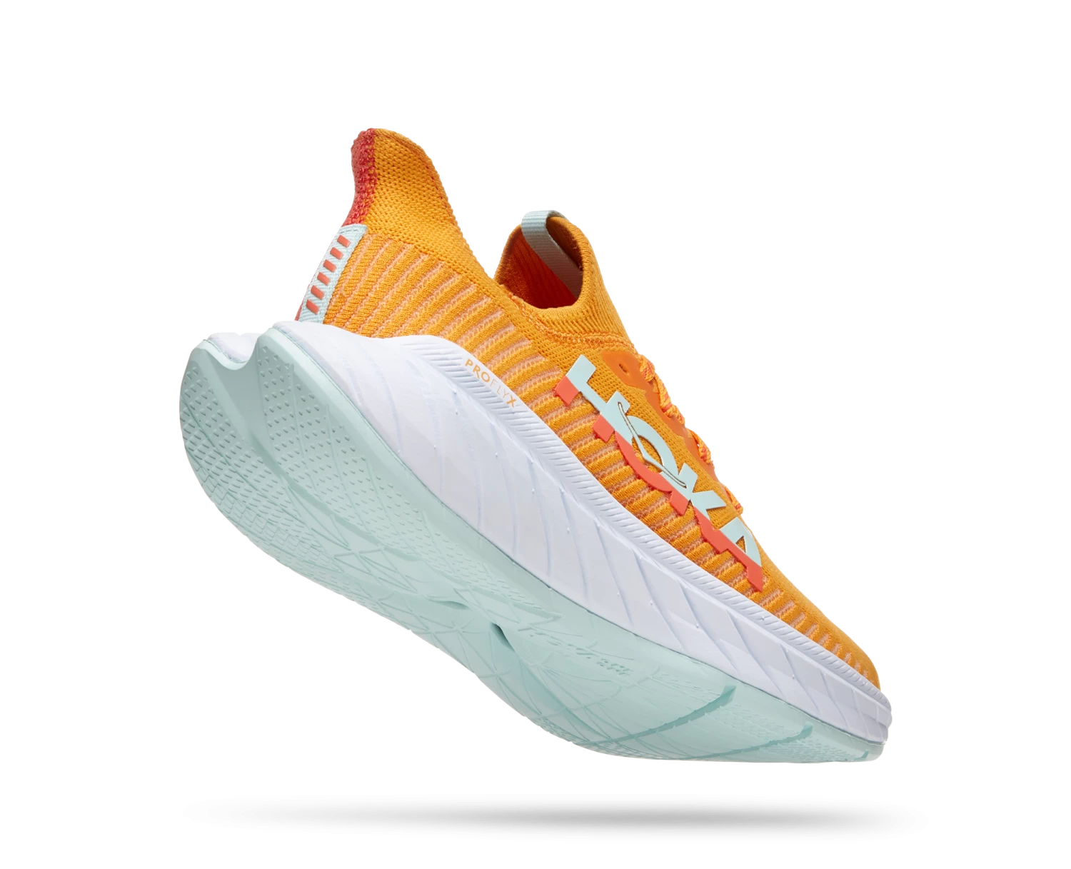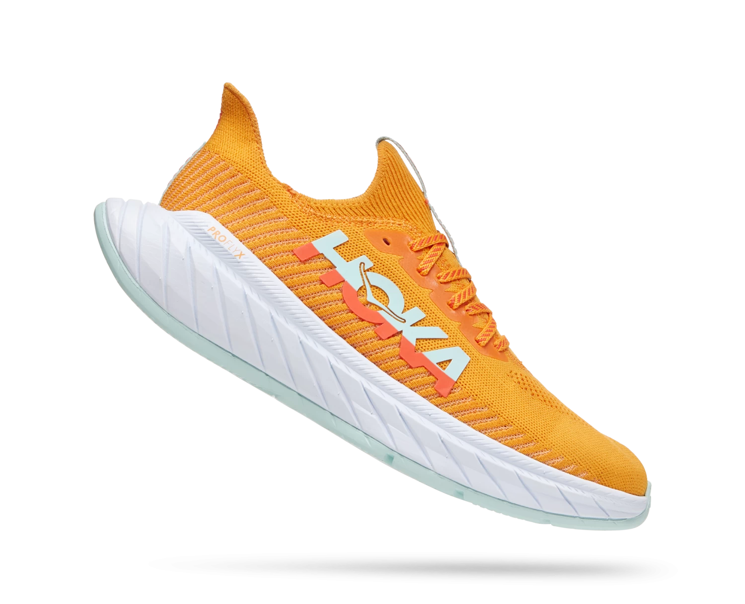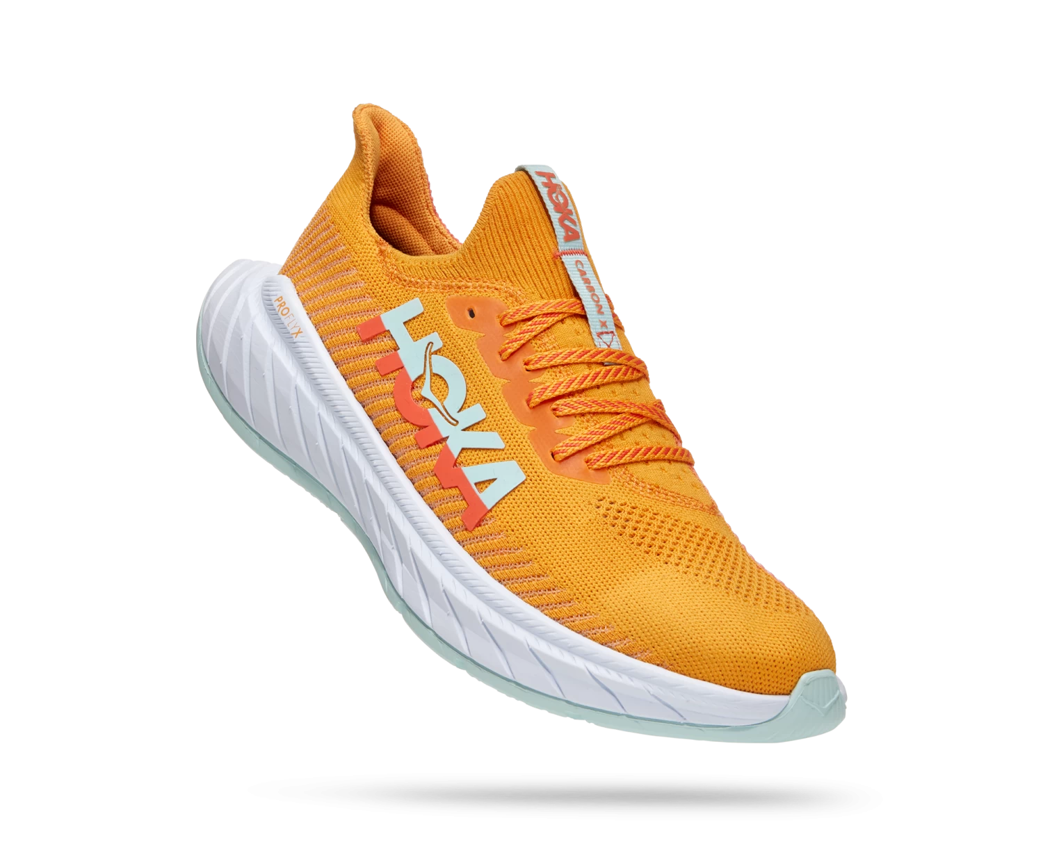 Delivering an even more propulsive ride than its predecessor through an energized new foam midsole, the new Carbon X 3 launches off the line with a brand new upper. Reworked with a premium performance knit for improved fit, this endurance racer is engineered with the same responsive, carbon fiber plate and aggressive Meta-Rocker. A formidable competitor, this performance shoe is finished with bold, asymmetrical coloring for a statement – making finish.