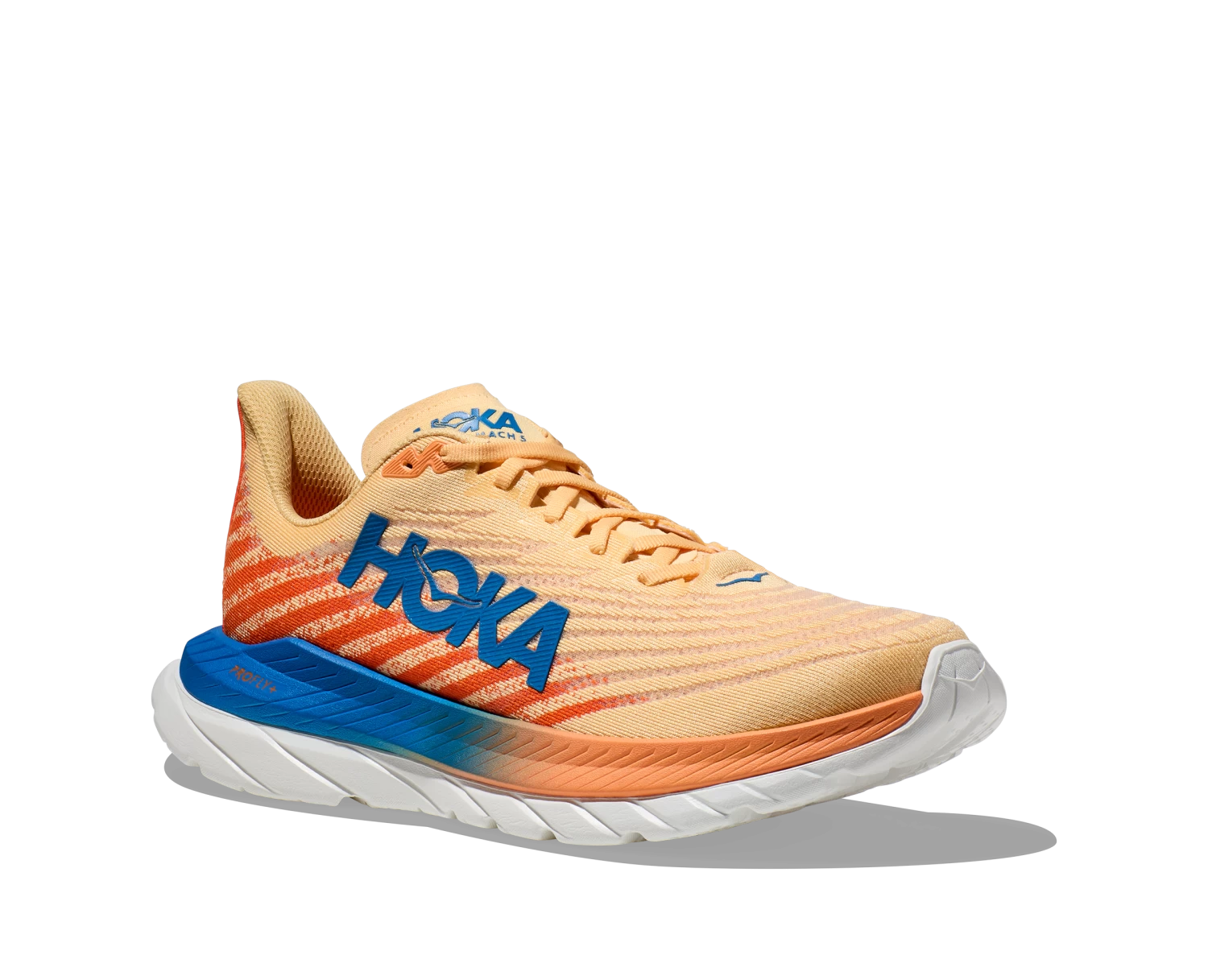 The lovechild of Mach 4 and Mach Supersonic, this lively pavement pounder is built for performance and ready to race. Sporting a stripped back creel mesh upper and lay-flat tongue, the new Mach 5 delivers a snappier ride with PROFLYâs stacked midsole setup, offering a lightweight, responsive foam directly underfoot and rubberized EVA below.