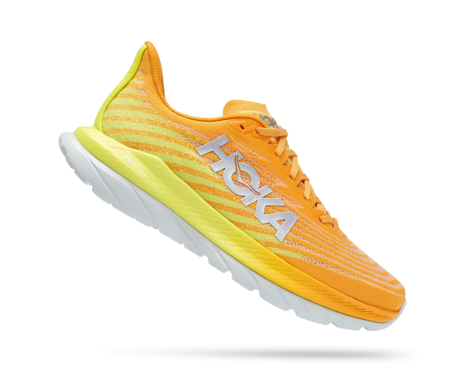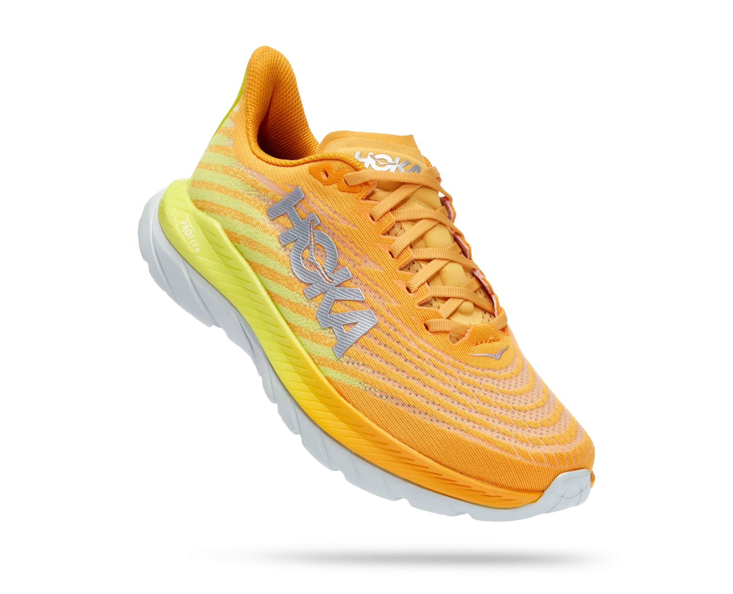 The lovechild of Mach 4 and Mach Supersonic, this lively pavement pounder is built for performance and ready to race. Sporting a stripped back creel mesh upper and lay-flat tongue, the new Mach 5 delivers a snappier ride with PROFLY’s stacked midsole setup, offering a lightweight, responsive foam directly underfoot and rubberized EVA below.