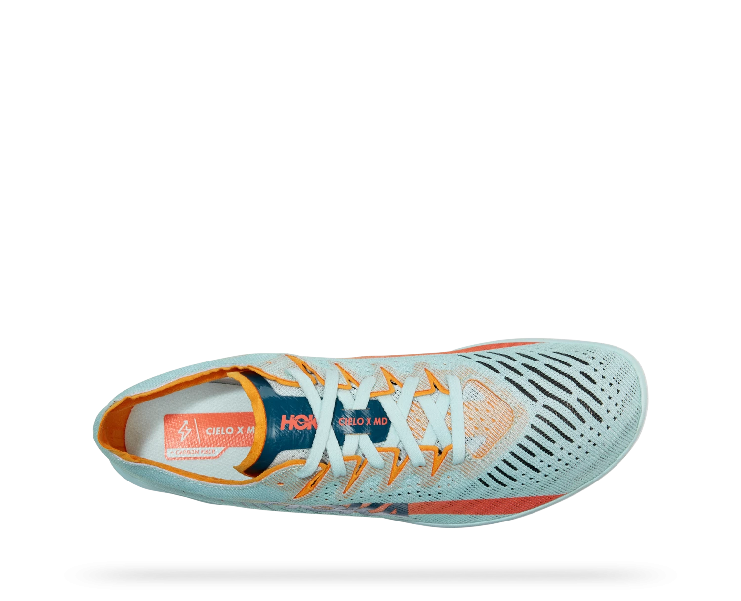When ripping around the track at dizzying speeds, a fast spike is a prerequisite for performance. Engineered with a propulsive carbon fiber plate and designed in accordance with World Athleticsâ guidelines, the Cielo X MD is geared for middle distances (800m-3K). Combined with HOKAâs lightest performance foam, this responsive race spike delivers a snappy ride in under 4.5 ounces.