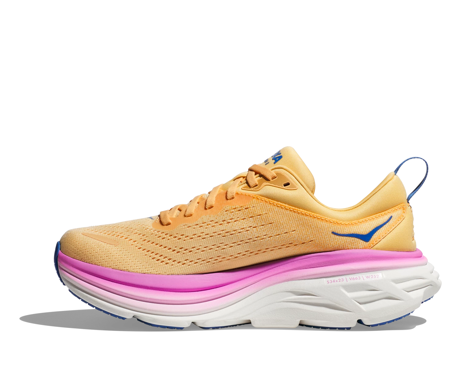 The ultra-cushioned game-changer. One of the hardest working shoes in the HOKA lineup, the Bondi takes a bold step forward this season reworked with softer, lighter foams and a brand-new extended heel geometry. Taking on a billowed effect, the rear crash pad affords an incredibly soft and balanced ride from heel strike to forefoot transaction.