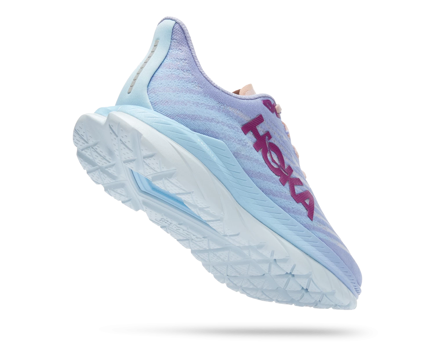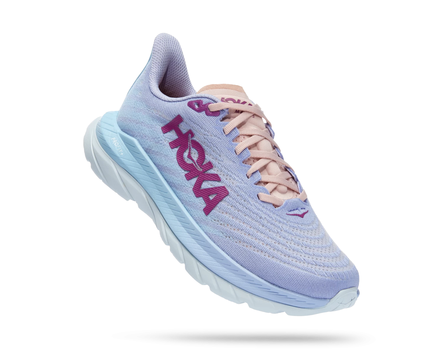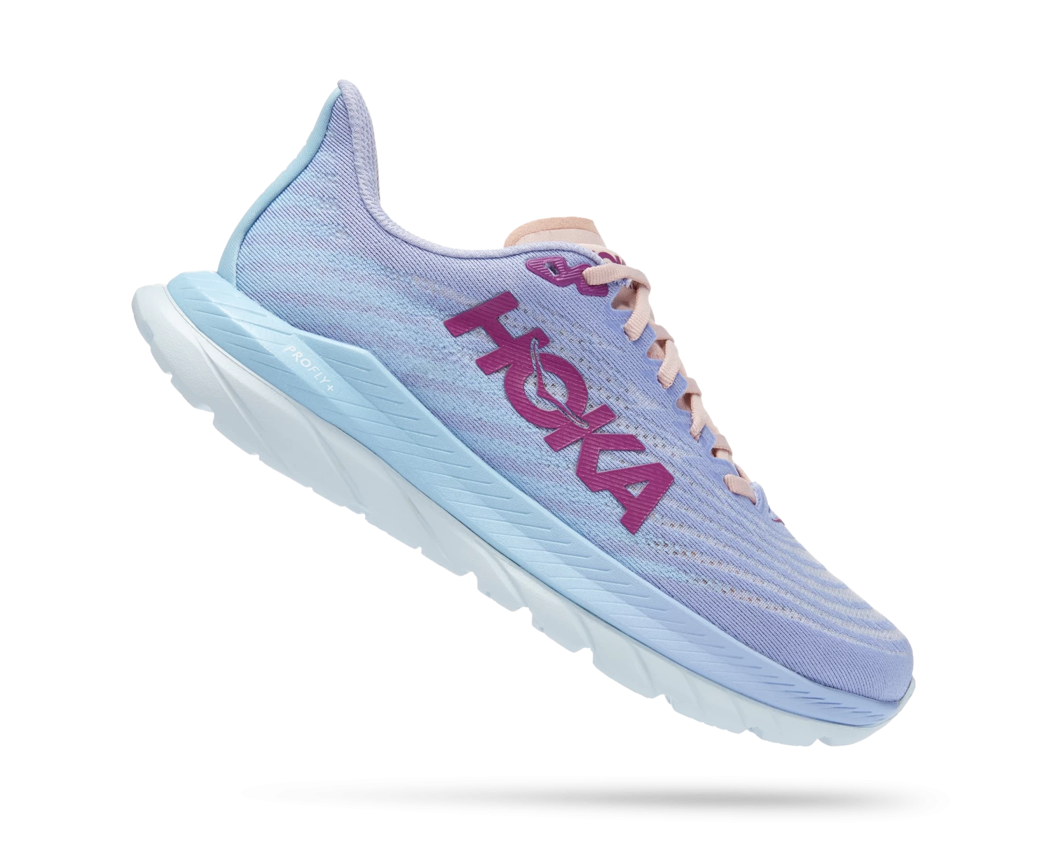 The lovechild of Mach 4 and Mach Supersonic, this lively pavement pounder is built for performance and ready to race. Sporting a stripped back creel mesh upper and lay-flat tongue, the new Mach 5 delivers a snappier ride with PROFLY’s stacked midsole setup, offering a lightweight, responsive foam directly underfoot and rubberized EVA below.