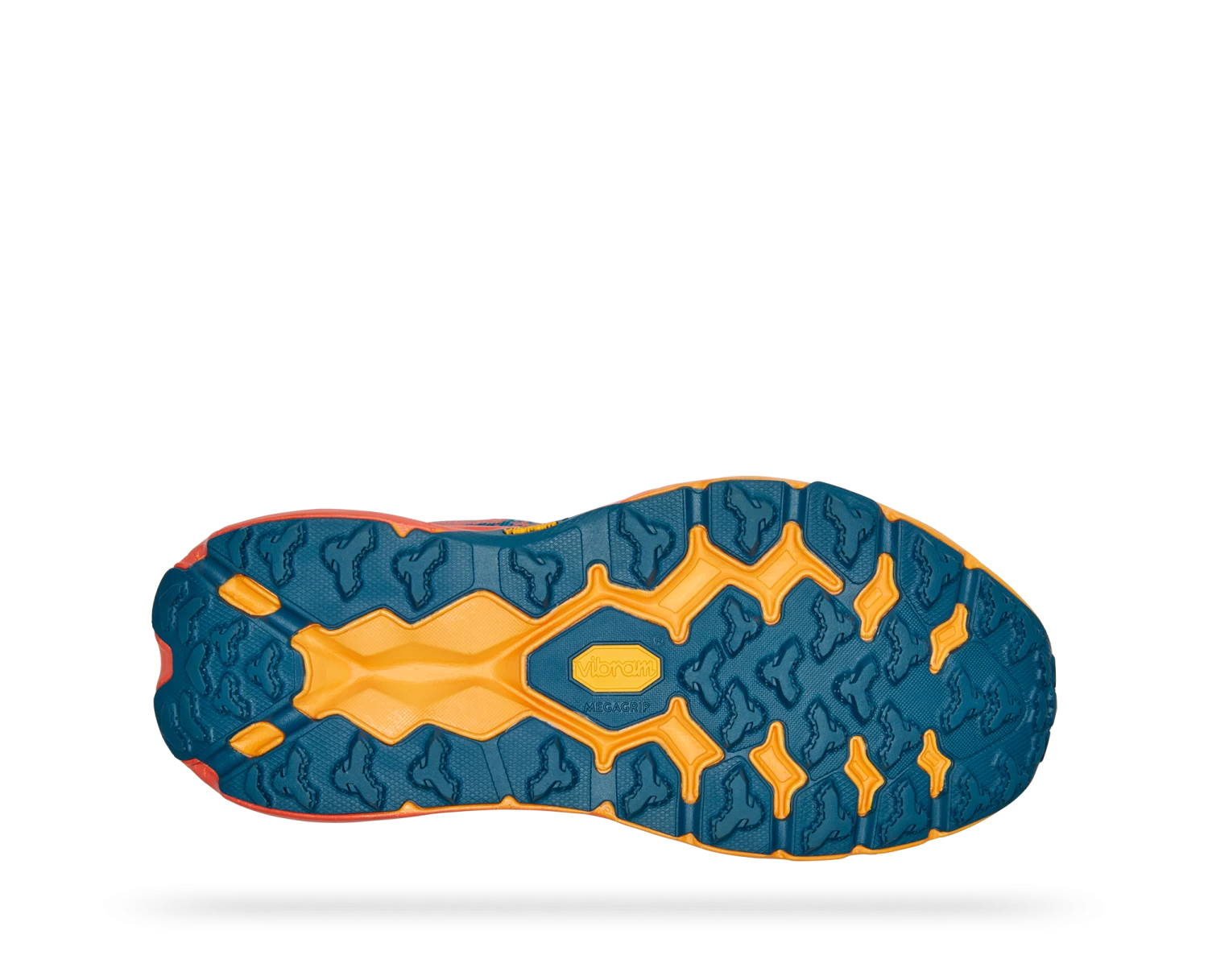 A workhorse designed for technical trails, the Speedgoat returns with less weight and more traction than ever before. A new shoe from outsole to laces, this trail beast is updated with Vibram Megagrip with Traction Lug for enhanced grip on loose soil. Retaining the same stack height and rocker profile, the Speedgoat 5 employs a lighter midsole compound and heartier, double layer jaquard mesh to inspire confidence on any terrain.