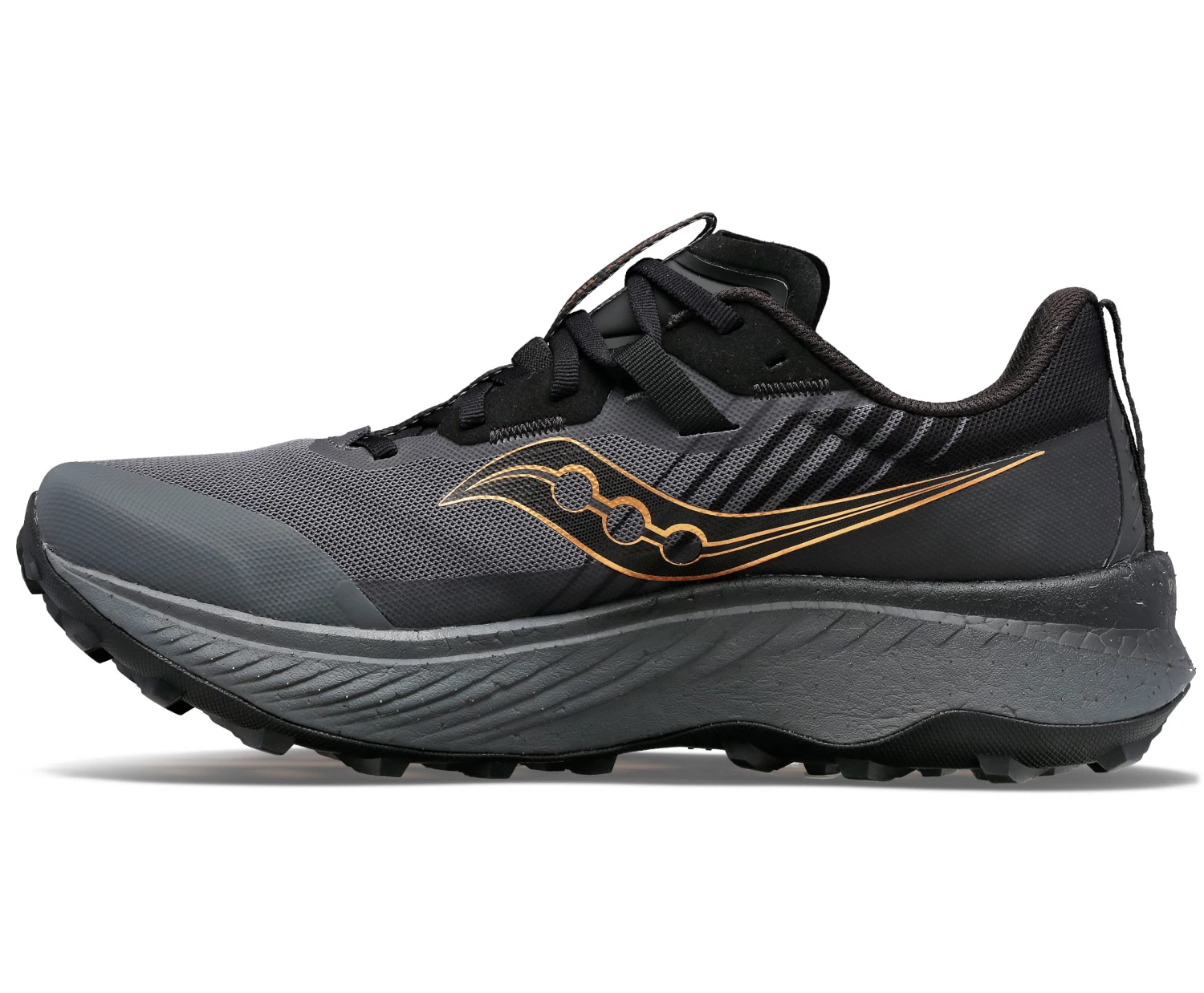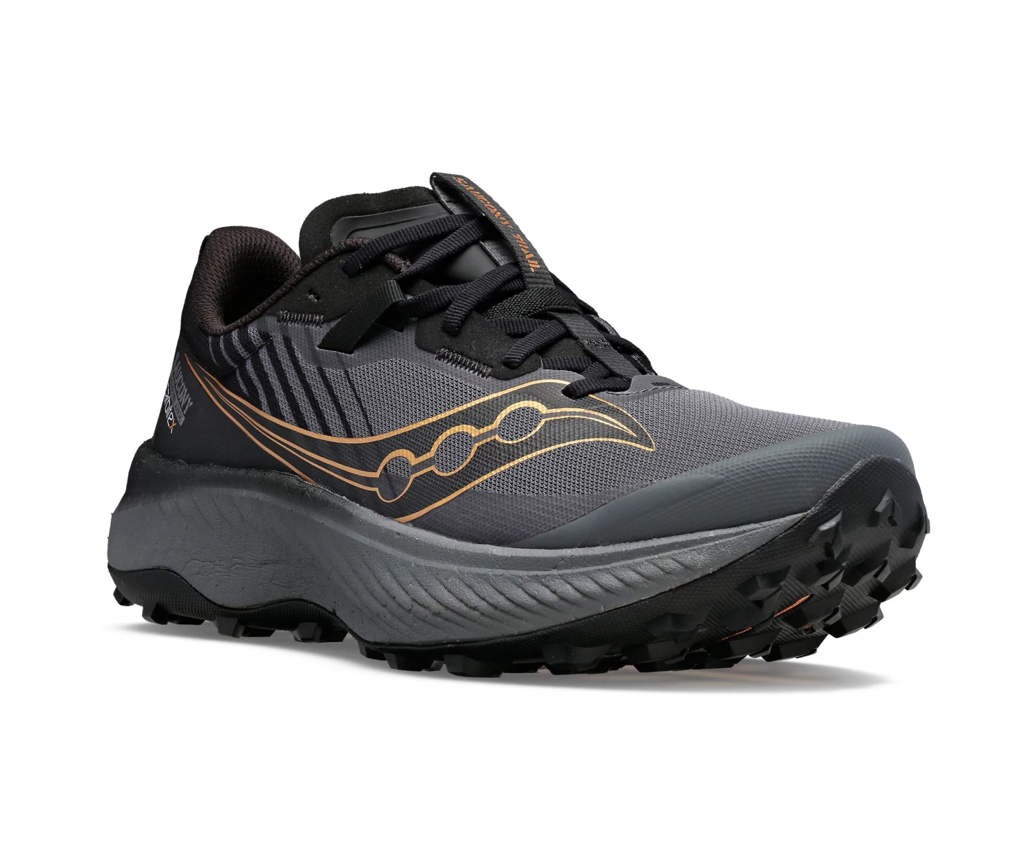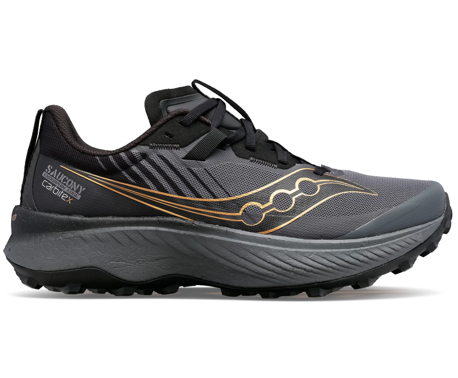 Amping up the energy and taking your trail running to a whole new level, your new Men’s Saucony Endorphin Edge trail shoes are a game changer! Saucony meets your need for speed with a Carbitex AFX 3-quarter carbon-fiber plate that helps you get up and accelerate even quicker while maintaining a natural ground feel. And that’s just the beginning of this efficiently engineered shoe. The intuitive design of the lightweight, absorbent mesh on your Endorphin Edge trail shoes actively pulls moisture away so your foot won’t slip or slide inside.