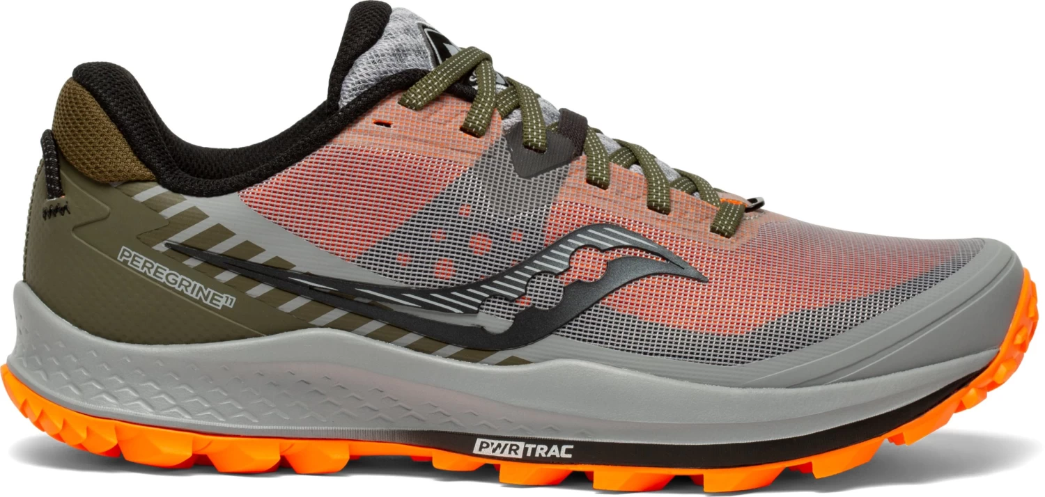Feel the speed and grip of the always-capable Peregrine 11. Built on a trusted foundation of PWRTRAC rubber lugs and PWRRUN cushioning, it delivers a ride that feels both aggressive and responsive. And with an even more protective upper than before, itâs packed with everything you need to move fast over any type of rugged terrain.