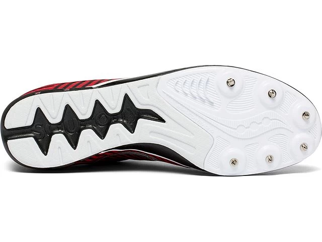 A highly versatile entry-level spike for the middle distance runner, the Saucony Vendetta 2 makes dropping times personal. Its responsive design and six-pin spike plate have the spring and the grip to have you flying around the track in events from the 400m to the 3200m. A lightweight, breathable mesh upper wraps the foot comfortably, while carbon rubber in the heel offers added durability.